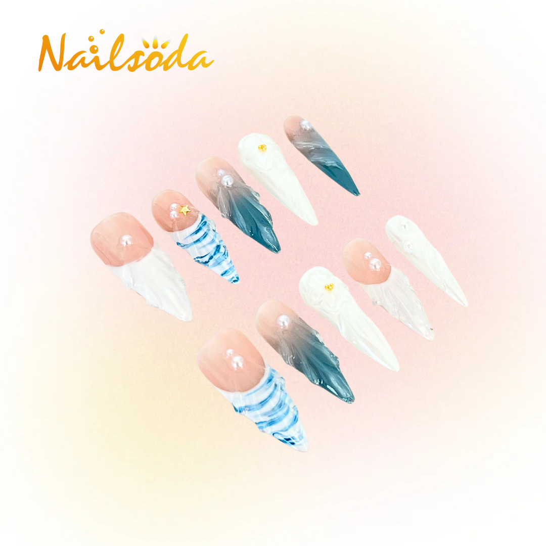 Whether you seek the calmness of the ocean breeze or the elegance of chic beach accessories, our wearable nail color collection allows you to create a captivating look with ease. Dive into vibrant shades of blue and white, and express your unique style effortlessly. Embrace the summer spirit all year round with nails that exude beauty, elegance, and a refreshing coastal vibe.