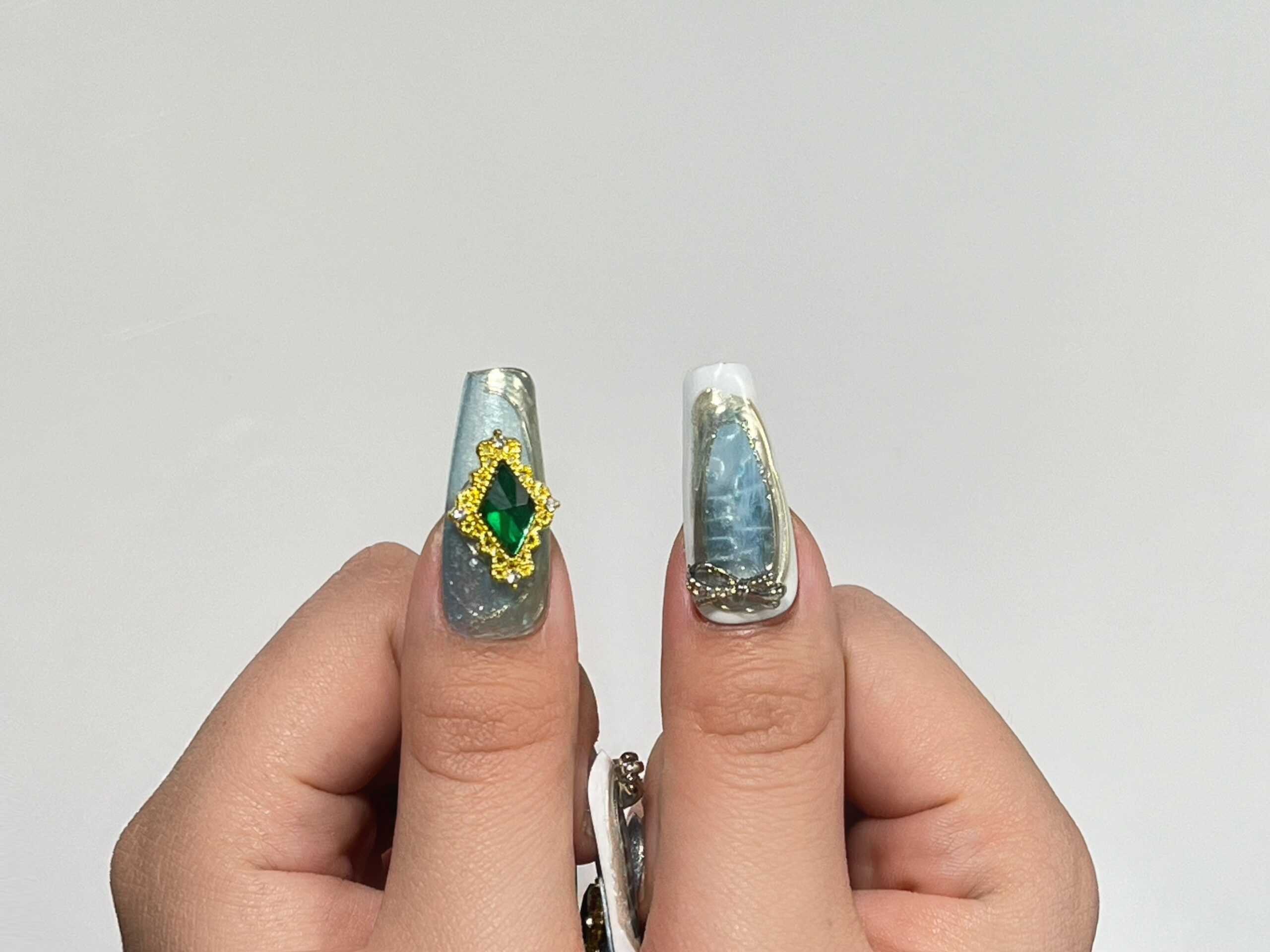 Introducing our exquisite armor, designed to captivate the gaze and embody strength. The beautiful combination of green and silver creates a visually stunning piece that stands out in any setting. The armor features a striking green diamond inlaid on its surface, resembling a pristine emerald that adds an aura of majesty. This design not only serves an aesthetic purpose but also symbolizes dignity and protection.